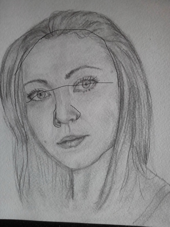 Очень здорово!По мелочи-лоб,да,повыше,глубина правого глаза,а главное тени на левой половине лица надо выразить,иначе получается лицо слева плоское.Что бы виден был легкий поворот ))