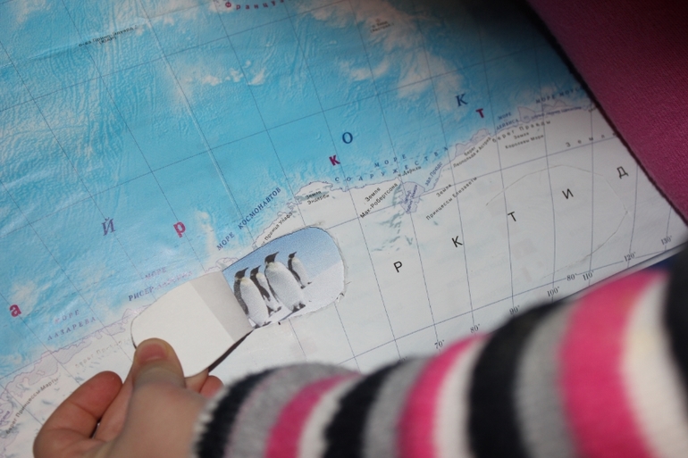 Очень понравилась карта! Все открывали и открывали окошки))) Папа за кадром, сидя на диване рассказывал про моря-океаны, материки, зверей-насекомых)))