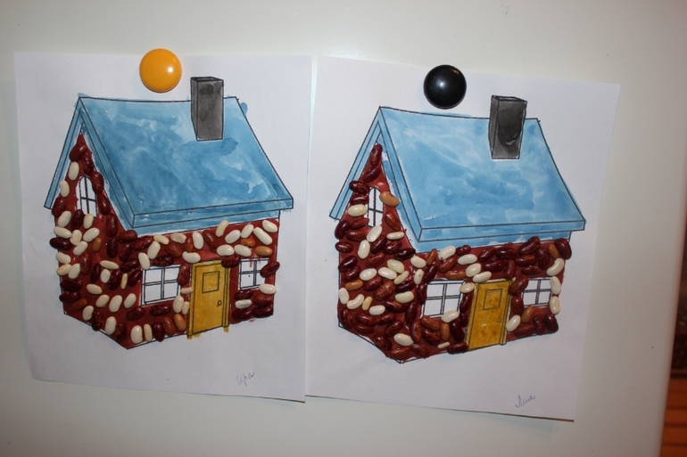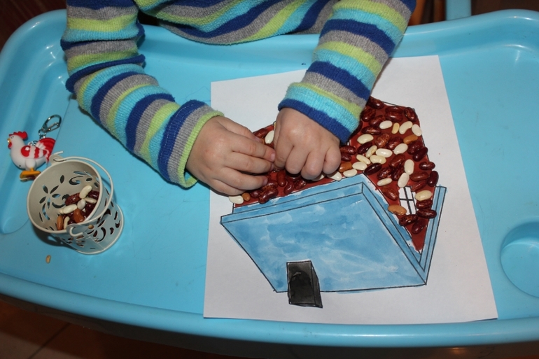 строили кирпичный дом (на пластилин выкладывали фасоль).