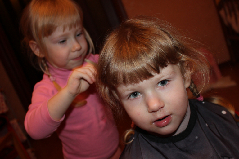 Когда я записывалась на ТЗ я хотела отвести детей в детскую парикмахерскую, подстричь челки. И мы даже записались и пришли. Но девчонки отказались, как только девушка-мастер их не уговаривала. Ходили мы вечером после д/сада, думаю дети просто устали, и следующий визит будет удачным.