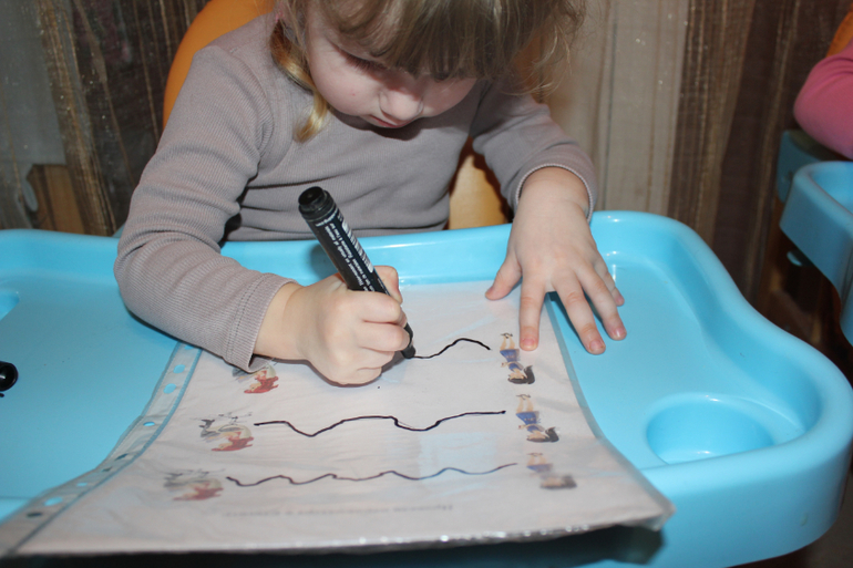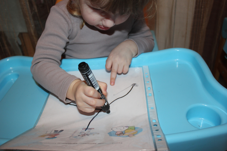 По приходу домой мы немного позанимались и поиграли, взяв накидку (или как ее правильно называют) у соседки.