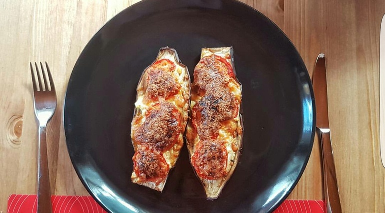 На ужин люблю делать баклажаны. Разрезаю вдоль. Солю. Кладу творог. Помидорки и сверху посыпаю мелкотертый сыр. В духовку на 180градусов на часик и мняяяям! Вкуснотища!