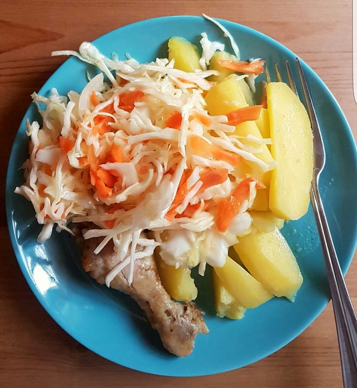 На обед готовится сразу суп куриный, тут все просто комбайн сразу рубит морковку, капусту, лук, картошку режу сама, курочка и иногда лапша, вместо капусты.