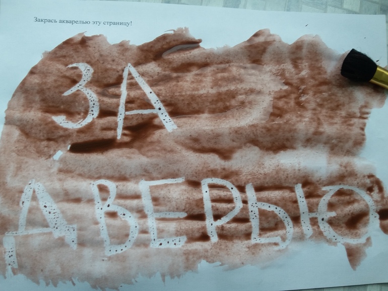 За занавеской лежат краски и последнее задание, которое указывает место приза: