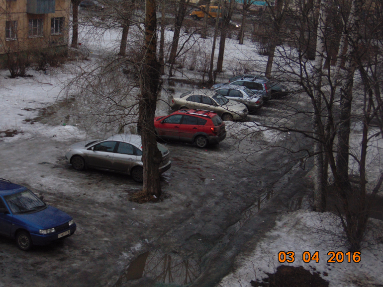 Да блин, грязь непролазная...Кругом это мессиво из снега, воды и грязи...Смотрю во многих городах так чисто во дворах, снега уже нет абсолютно...У нас же, когда растает весь снег, там ,где стоят машины будет ужасная грязь...