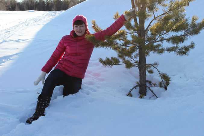 Хотела сфоткаться возле сосны и опять провалилась по колени в снег...