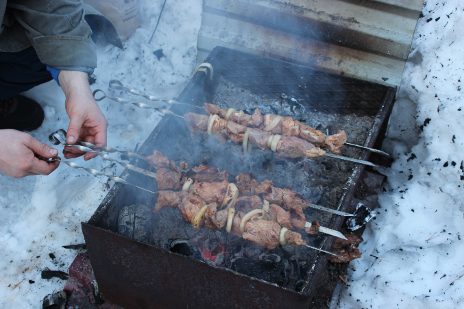 Начали с приготовления шашлыков