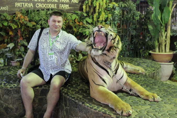 Тигр живой... Он так улыбнулся.... Я б не стала фотографироваться с таким зверьком...