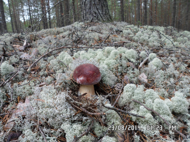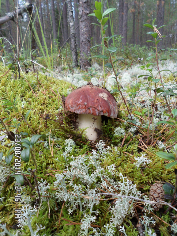 Вот в таком мху мы и искали белые грибы