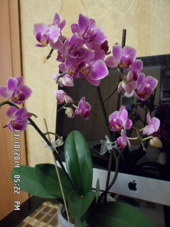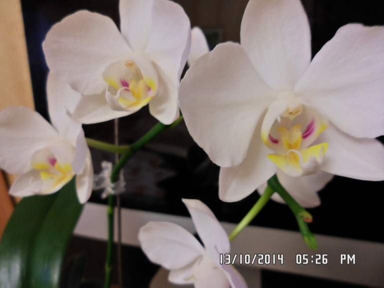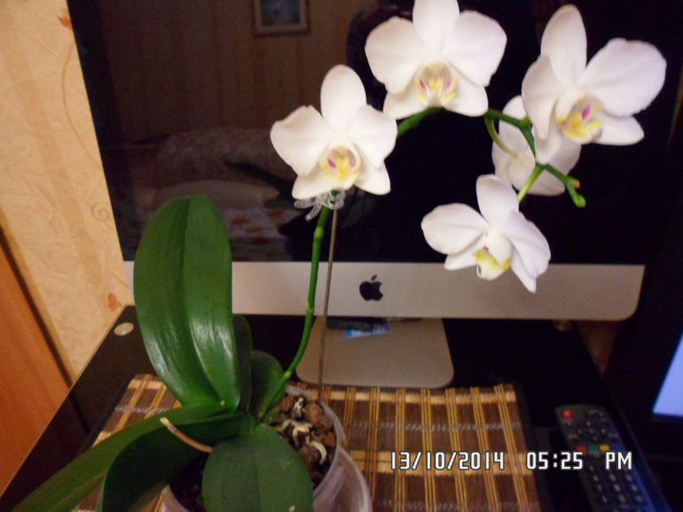 А это орхидея среднего размера. Цветов немного, но красива по-своему. Белоснежная!