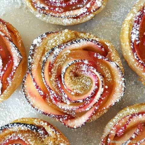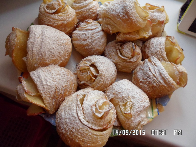 Розы из яблок в слоеном тесте