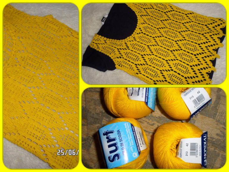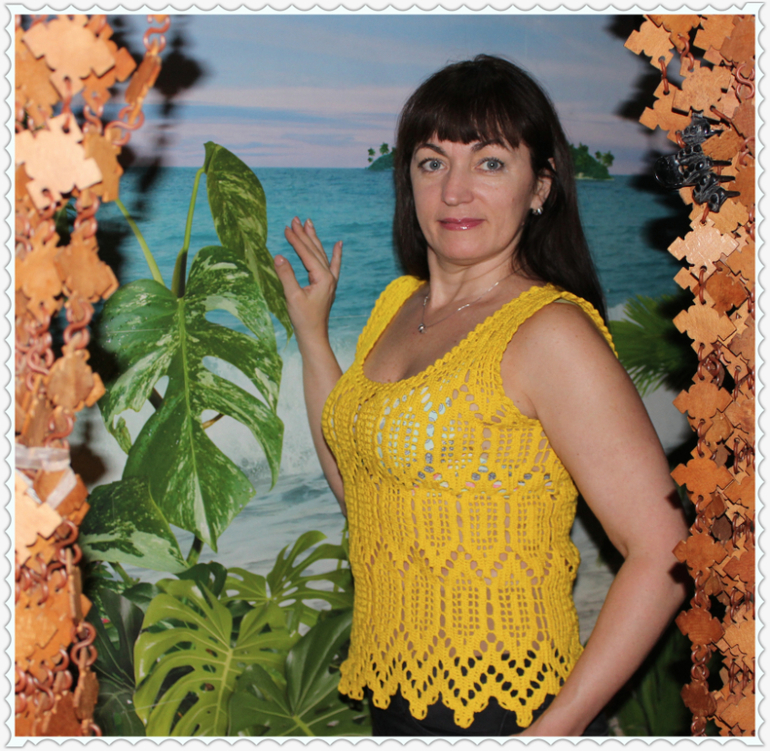 Связала летний топик филейной вязкой. Пряжа - итальянский хлопок (очень приятная ниточка), крючок № 2. Первый такой топик вязала строго по описанию, но он оказался катастрофически мал. Распускать не захотела - поэтому решила связать новый. Тем более, мне это интересно - так как я начинающая вязальщица крючком.