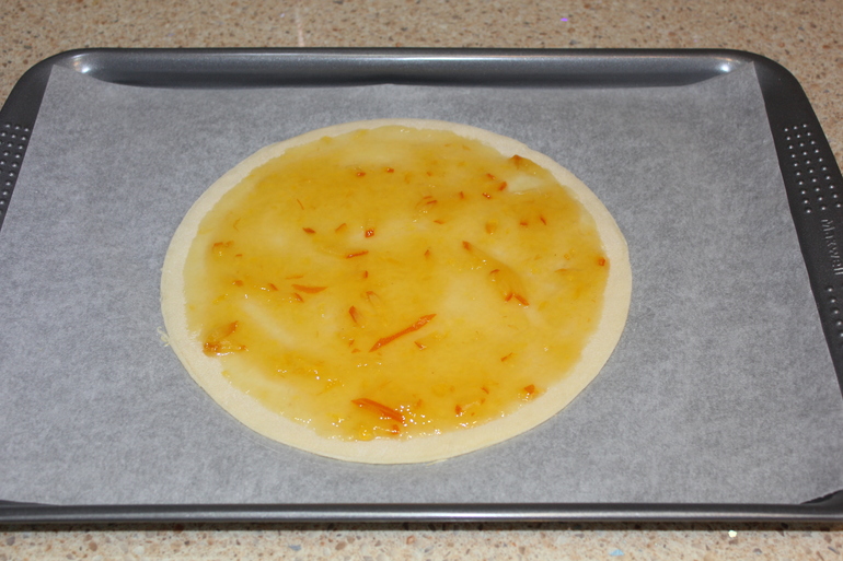 Джем распределить равномерно по поверхности круга, отступив от края 1,5 - 2 см