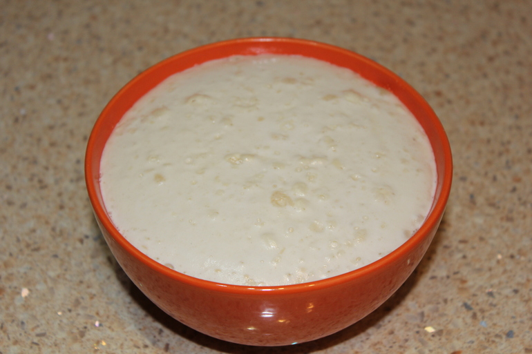Миску с тестом накрыть крышкой и поставить в теплое место