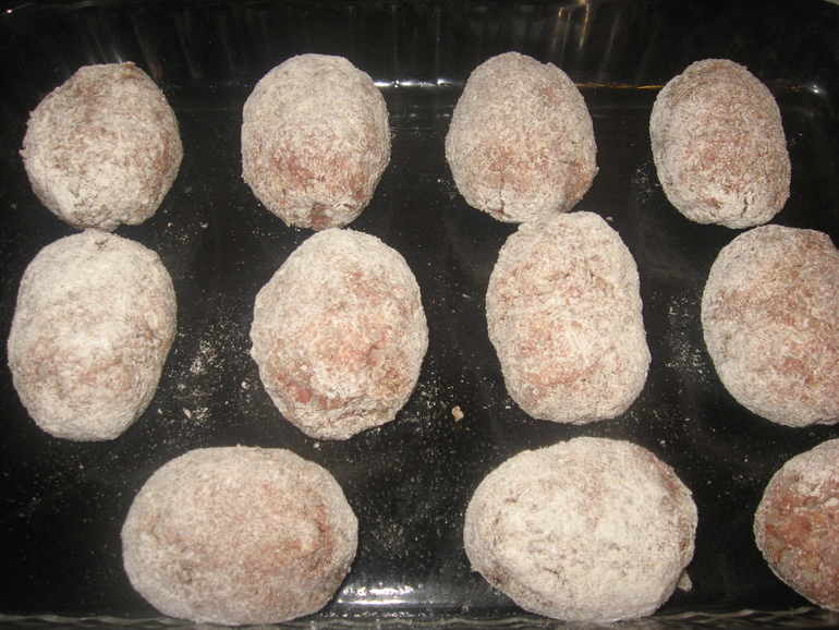Сформировать из фарша котлетки, обвалять в муке и выложить в смазанную маслом форму.