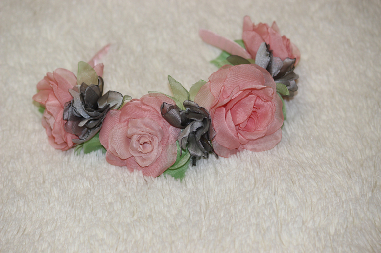 Хочу показать свое первое творение - веночек и заколки из роз. Это моя первая работа, поэтому не судите строго!