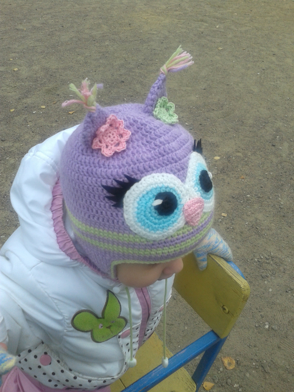 Решила выложить этот комплект, который вязала для дочки в прошлом году. Конечно, не новая модель, но исполнение нас с дочкой очень устроило. Сложнее всего было придать выражению глаз совы "натуральности".