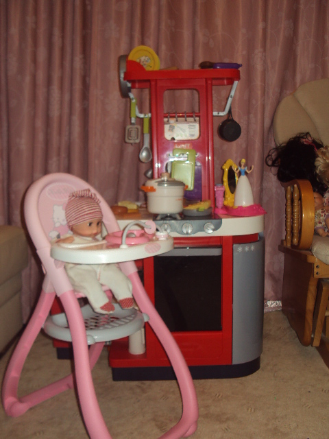 понимаю, сама очень долго выбирала))) Она очень устойчивая, дочка на нее залезает и прыгает и что только не делает, стоит уже год как новая) И посуду можно там же купить, все как настоящее, только в уменьшенном виде.