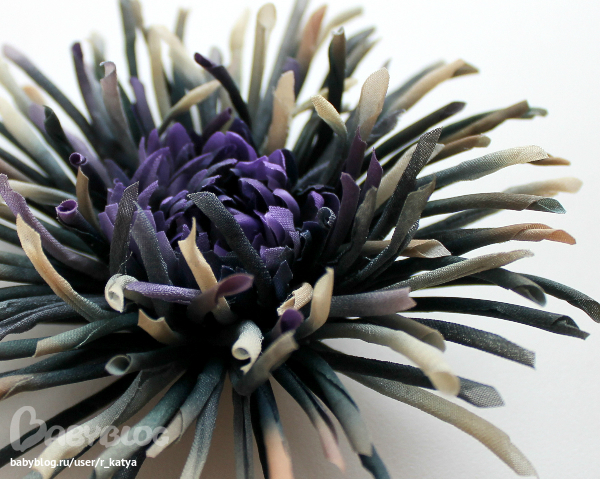 Девочки, подскажите пожалуйста как и чем обрабатывать лепесточки, чтобы получилась игольчатая хризантема как на картинке. и может выкройки какие спец. нужные (не как для обычной хризантемы).