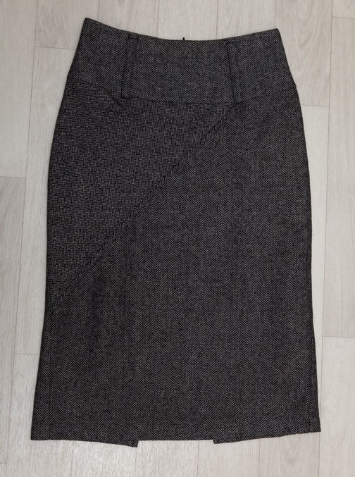 2) Теплая серая юбка Панинтер, в очень хорошем состоянии, б/у мало, на подкладке, в составе 20% шерсти, высокая талия. Размер 42, мерки по ткани: длина 65 см, талия 34 см, бедра 46 см. Цена 350р.