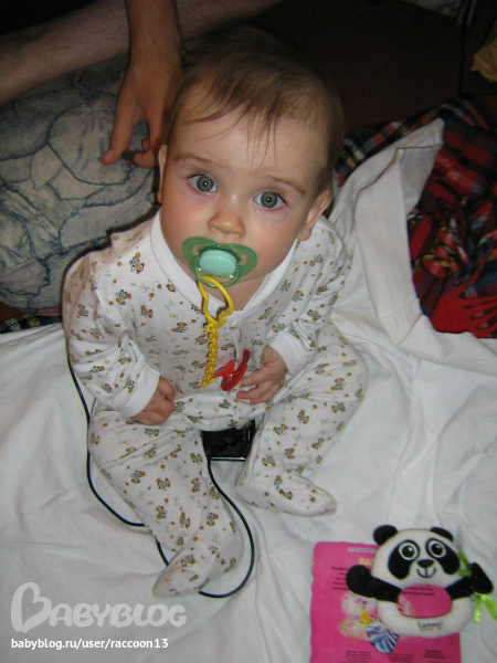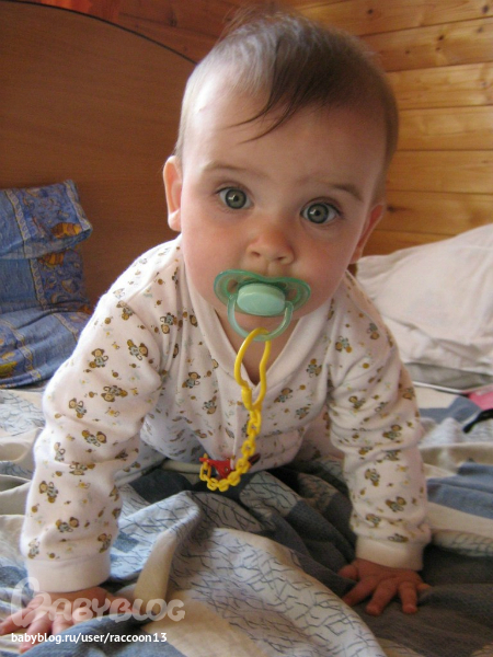 вообще девочка позитивная растет, болтушка, набор слов пока не велик, но на своем тарабарском лапочет только так :) всегда, когда уходишь из комнаты вместе с ней она машет пока-пока, играет в ладушки, с ней играть необязательно, она и сама может :)