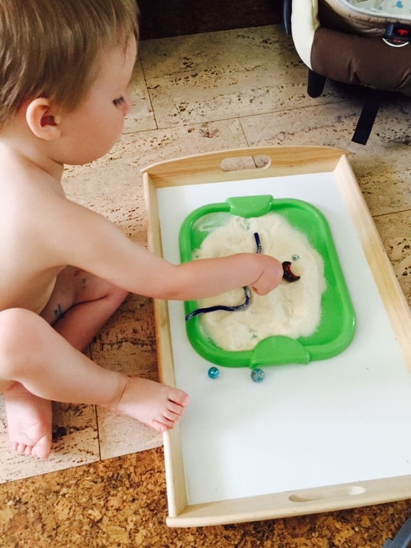 в роли змеи - синельная проволока, показала, что змея гибкая и какой след она оставляет на манке, заодно повторили буквы.