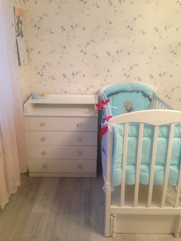 Начала выбирать кроватку, комодик с пеленальный столом, а так же постельные принадлежности.