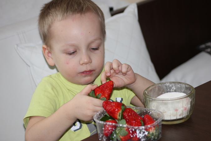 Как же меняются вкусовые пристрастию Владки:)))) Сейчас он "подсел" на клубнику. Каждый день я ее на покупаю( это уже совсем буржуйсткие замашки:)) ),а вот через день....:) Уже прямо требует...А вот прошлым летом как-то холодно к ягодам относился,ну мог одну-две съесть,и то как одолжение.А вот в год ел клубнику с удовольствием....)может у него так: по не четным годам - люблю,по четным- нет!!