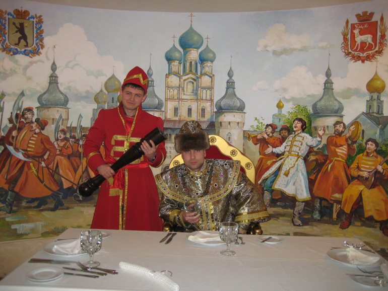 Еще одно интересное место, трапезная Иоан Васильевич! это ресторан по мотивам фильма Иван Васильевич меняет профессию. Здесь Вы найдете интерьеры из фильма, копии все комнат из фильма, покажу немного фото) все костюмы их) есть советские интерьеры, сходите, не пожалеете)))