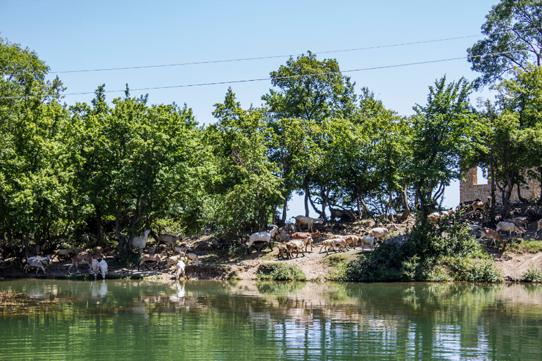 Козы пришли на водопой...дети за ними побежали, еле их догнали. Дольше всех бежал Федюня. Чуть его не потеряли, прыткий такой стал!