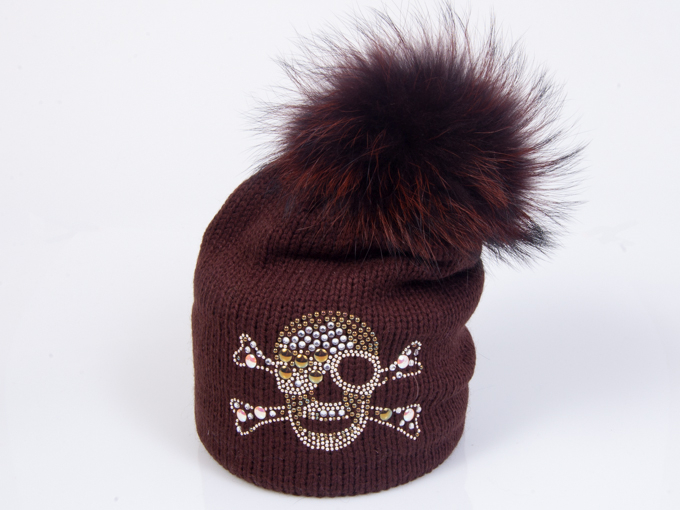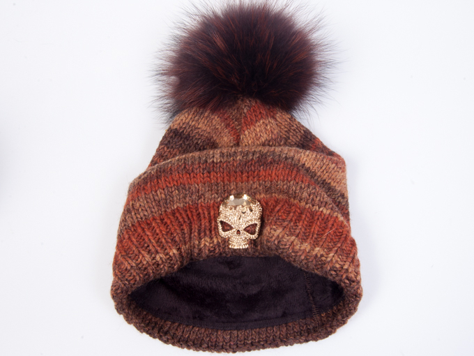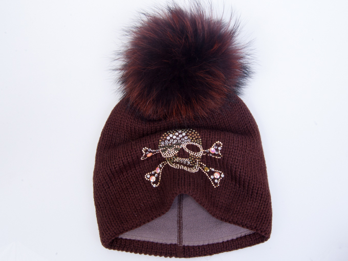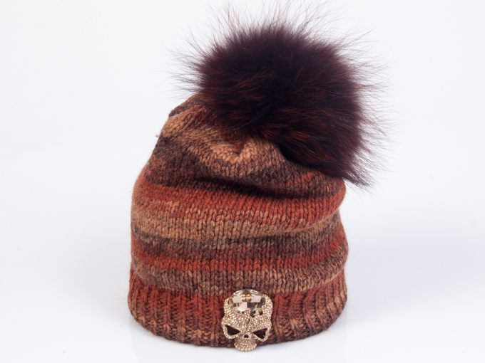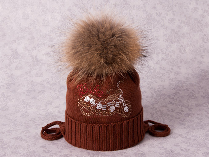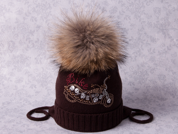 Цвет: бежево-коричневый / Помпон: натуральный мех енота