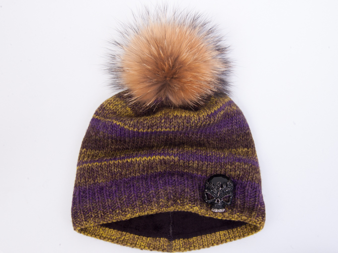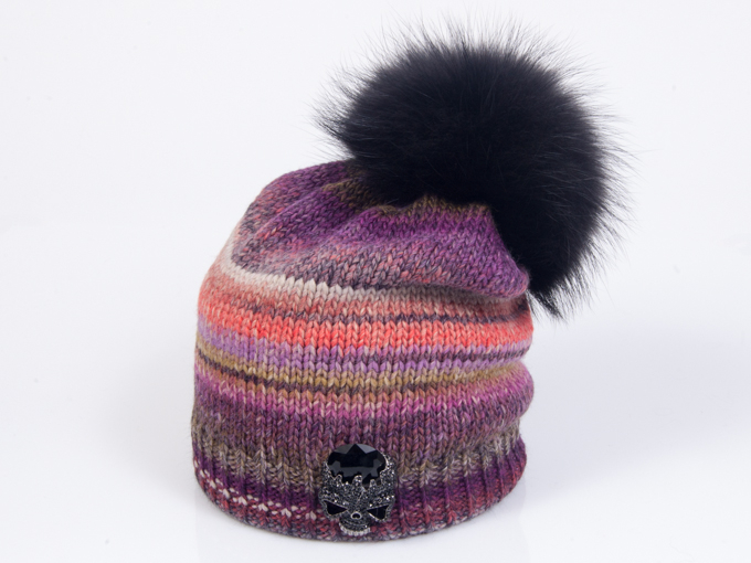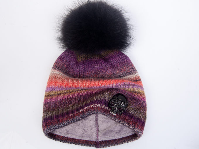 Цвет: темно-сиреневый / Помпон: натуральный мех енота