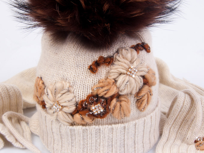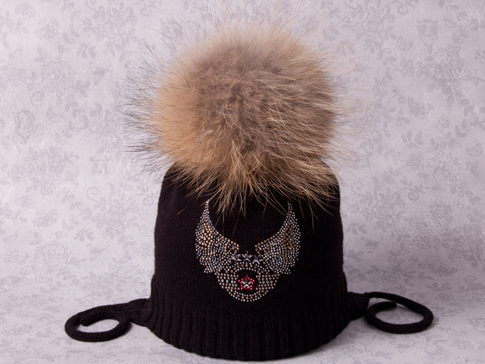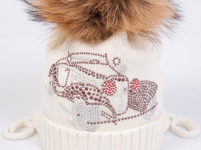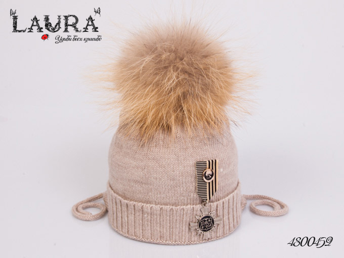 Цвет: светло-бежевый / Помпон: натуральный мех енота