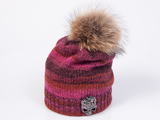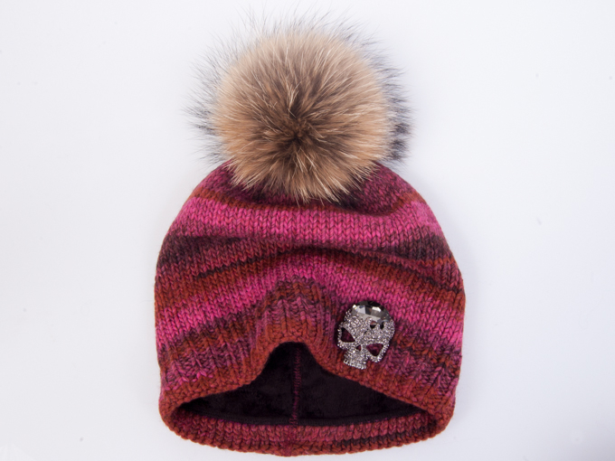 Цвет: ярко-розовый / Помпон: натуральный мех енота