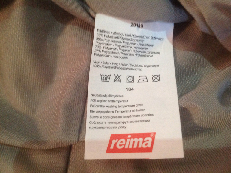 Состав материала: наружный слой (Reimatec) - 100% полиэстер + мембрана 100% полиуретан; утеплитель - 100% полиэстер; подкладка - 100% полиамид.
