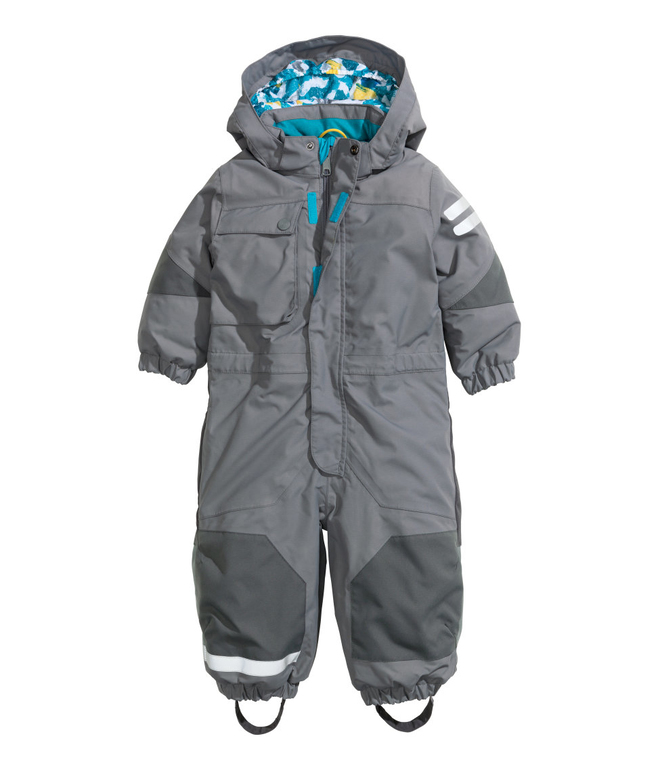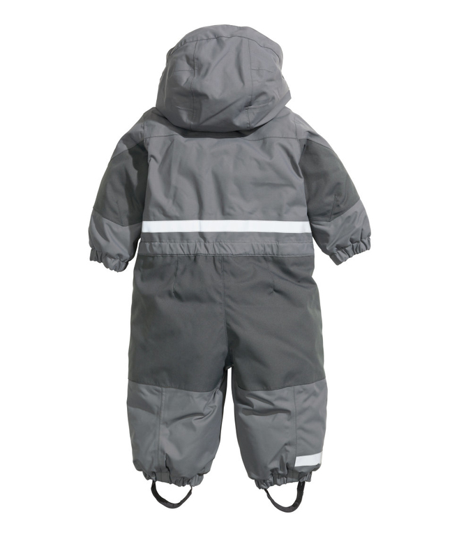 Комбинезон еврозима (т.е. на нашу холодную осень) фирмы H&M. Ветронепроницаемая, водонепроницаемая дышащая ткань. Впереди на молнии, отстегивающийся капюшон, карман на груди на кнопке. Отражающие детали на рукаве, спине и ноге. Регулирующая резинка в талии. Проклеены швы на попе и коленях. Регулируемая резинка в штанине - одевается на ботинок. Подкладка - подкладочная ткань. Состав 100% полиамид. Машинная стирка при 40*. Цвет серый с цветной подкладкой в капюшоне- самый лучший для прогулок в слякоть, не будете каждый день стирать. Размер 9-12мес (74-80) 1850руб