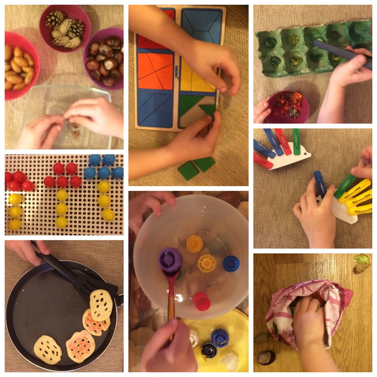 - раскладывали пинцетом по ячейкам фикспрайсовские желуди и яблочки (по 1в ячейку)