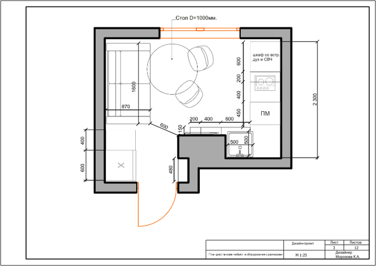 Новый проект -кухня .Площадь помещения 8,5 кв.м.
