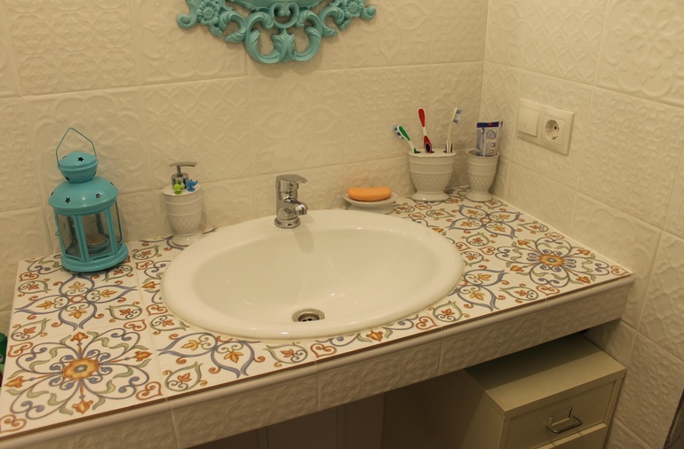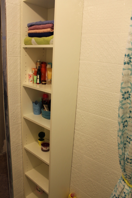 Еще не наведен марафет,не все доделано, плитка на полу не отмыта, шкаф временный, хочу заменить на широкий билли с дверями со стеклом. Тумба Икеа под столешницей нашла свое место случайно и не планировала там поселиться, но я думаю оставить ее там. Удобная она для разных мелочей "некрасивых")))