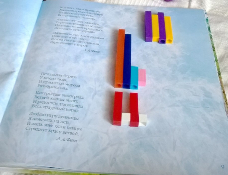 7. Нельзя не сказать про альбомы по палочкам Кюизинера! У нас все три есть, честно говоря качеством они похвастаться не могут, но идеей авторов мы все же пользуемся. Вот пара картинок: