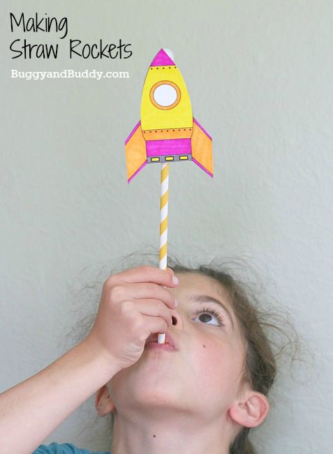 2. Развитие дыхания. На трубочку надевается бумажный колпачок с приклеенной ракетой. Сильно дуем и пускаем ракету в космос )