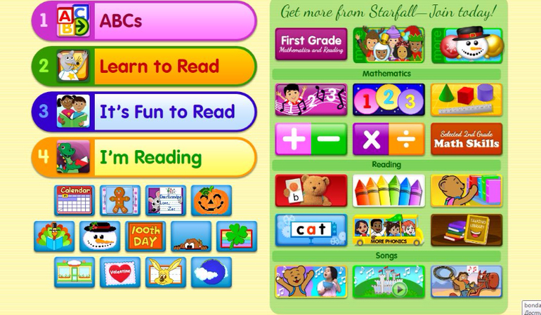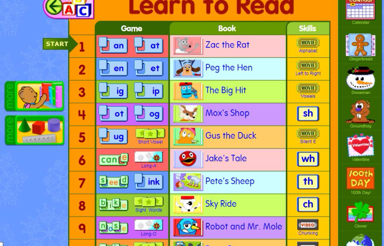 В разделе "Learn to read" вы найдете 15 уроков. Учиться читать становится интересно! Всё можно тысячу раз послушать, пощелкать, даже покрутить:)