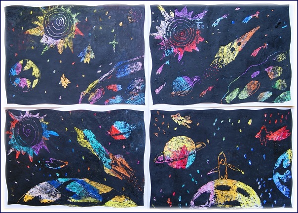 А вот техника гратаж -способ выполнения рисунка путём процарапывания пером или острым инструментом бумаги или картона, залитых тушью. Другое название техники - воскография. Произведения, выполненные в технике граттажа, отличаются контрастом белых линий рисунка и чёрного фона и похожи на ксилографию или линогравюру. Чтобы облегчить удаление туши с поверхности бумаги или картона, его пред заливкой тушью покрывают слоем воска (парафина). Чтобы тушь не собиралась в капли на восковой поверхности её смешивают с мылом (мыльным раствором). Иногда бумагу предварительно тонируют красками, что придает последующему рисунку более живой вид. Также иногда вместо воска (парафина) используется масляная пастель: бумагу (картон) натирают пастелью до полного закрашивания и покрывают темной.