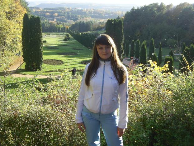 Возвращаться можно по пологой, но долгой дороге назад в центр парка, мимо Долины роз и Майской поляны.По пути есть замечательное, но очень щекочущее нервы, место для фотосессии (сзади обрыв):