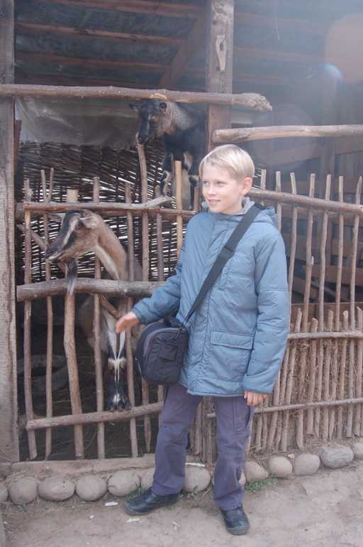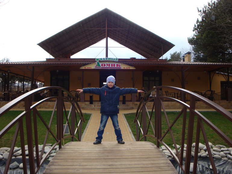 На территории кафе есть чем заняться детям, деревянный игрушечный домик, качели, прудик с рыбками и, конечно мини-зоопарк, где можно покормить животных, вход бесплатный.