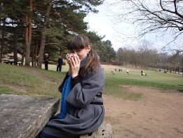 Майская поляна - круглое поле с зеленой травкой , окруженное соснами, излюбленное место валяния на пледах и спонтанного играния в футбол. Фото весенне-пасмуроное: