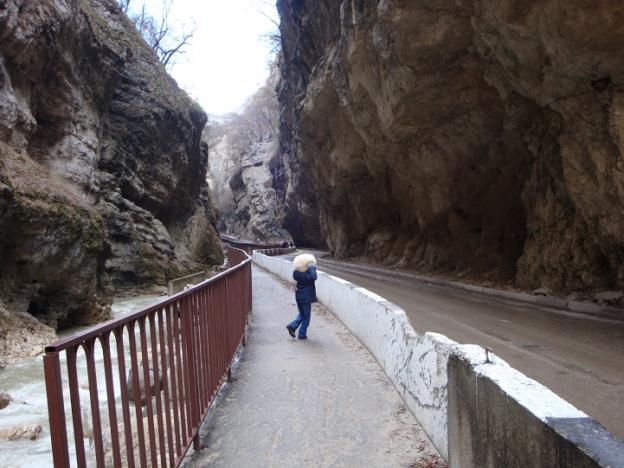 В древности по ущелью проходил торговый путь и , если встречались два обоза, то один из них по жребию сбрасывал весь товар вниз, т.к. пройти мог только один.