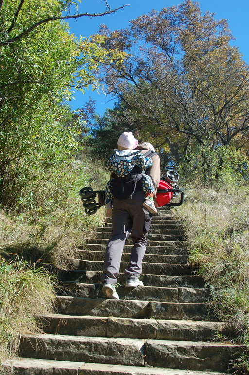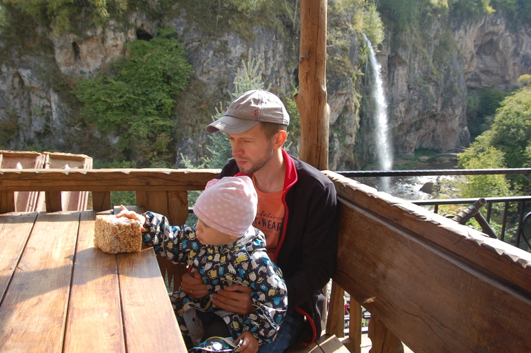 Спуск к самим водопадам по лестницам с маленькими детьми не очень удобен, только если в эрго-рюкзаке на спине у пап. Давид в 4 года сам прошел, но за мою руку, мне было за него в нескольких моментах страшновато.