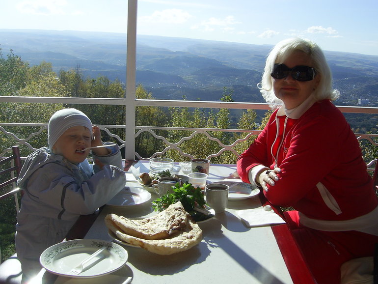 На верхней станции «Хрустальный храм» домашняя кафешка с прекрасными видами, домашними вкусностями и травяным чаем:
