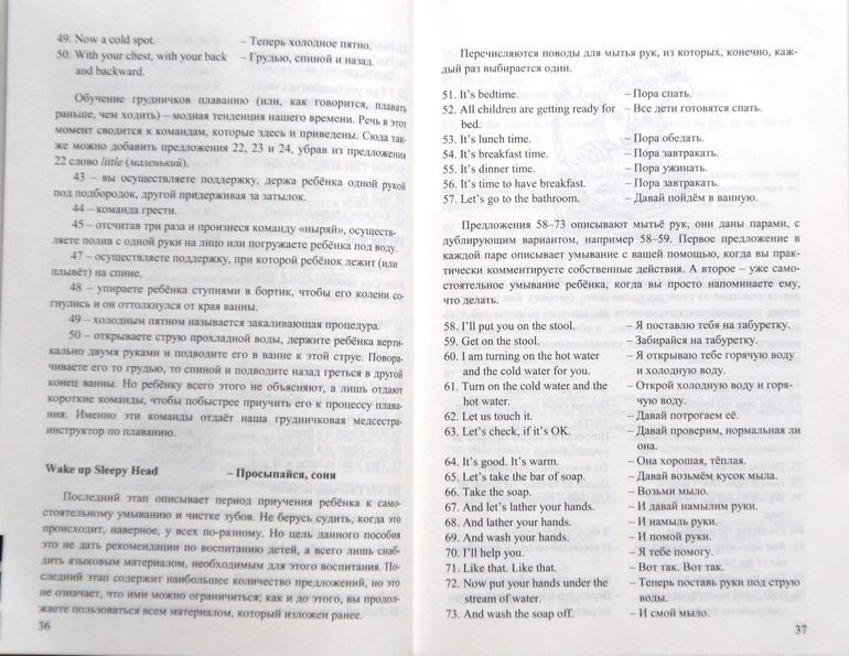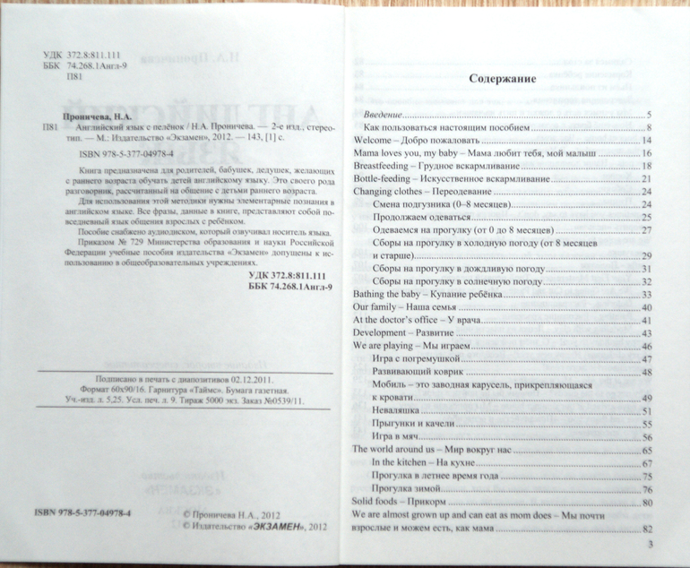 Для родителей удачным приобретением будет недорогая книжечка Проничевой, в которой собраны предложения на английском языке на все случаи жизни в общении с ребенком!